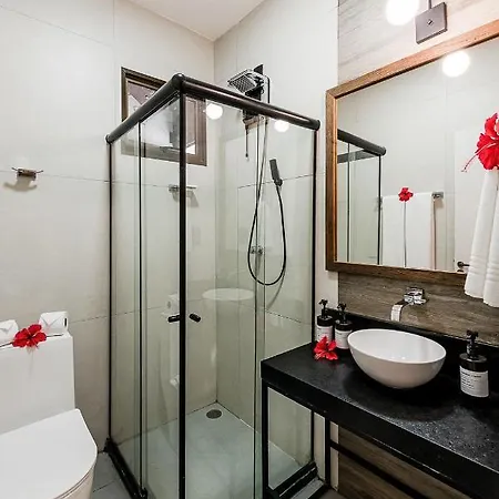 Controle de temperatura, juntamente com mini frigobar, proporcionam conveniência no quarto do Triângulo Noronha. Banheiro separado e chuveiro são oferecidos nos quartos.